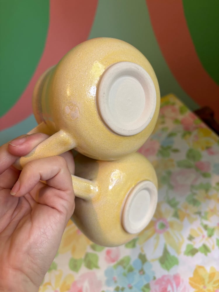 Set of two porcelain mugs. Each comfortably holds 10 ounces.